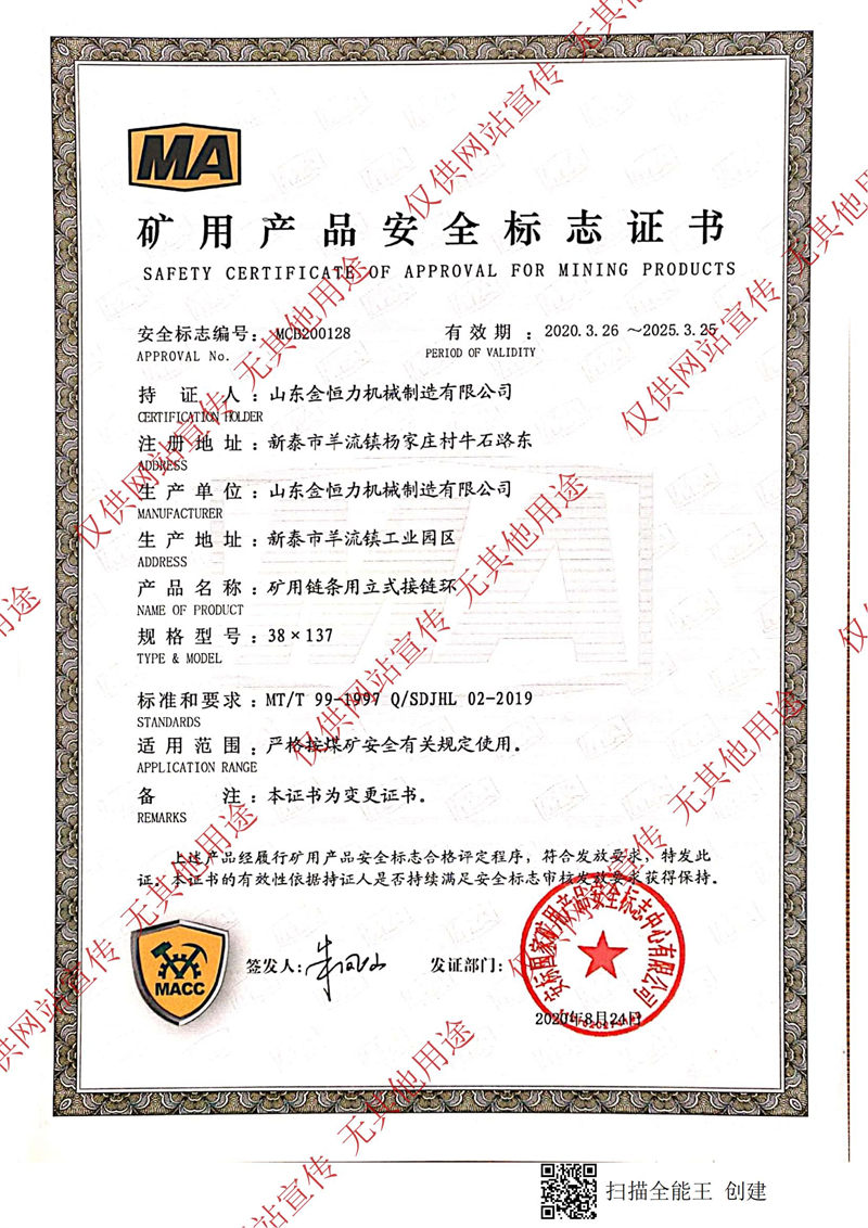 礦用產品安全標志證書